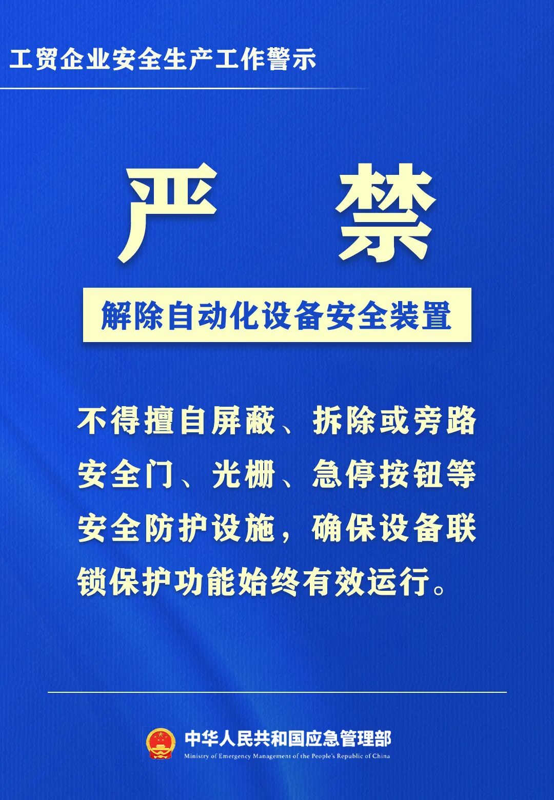 今年以来,全国安全生产形势总体平稳,但近期工贸行业较大事故出现反弹。2026年3月13日,广东肇庆一汽车零部件厂发生事故,造成3人死亡、4人受伤;3月15日,山东烟台一汽车零部件公司发生机械伤害事故,造成3人死亡。为深刻吸取事故教训,防范遏制同类事故发生,现就工贸企业复工复产等安全生产工作提示如下: